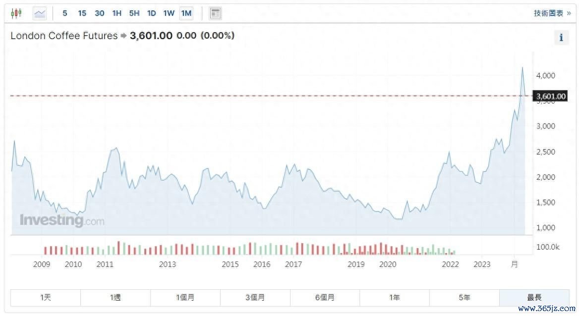 值得注意的是,过去两个月,由于巴西和越南的农作物问题,咖啡价格出现了飙升。特别是对越南过度干燥导致罗布斯塔咖啡产量受限的担忧,使得罗布斯塔咖啡价格达到了新的历史高点。
