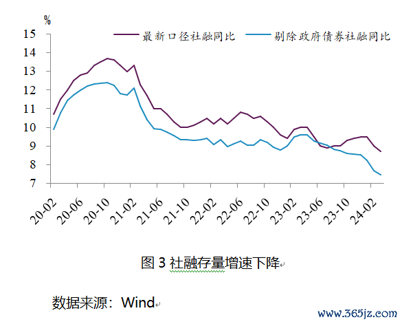 在2024年第一季度,社会融资规模(社融)同比少增1.6万亿元,总体增速降至8.7%。在此期间,人民币贷款和政府债券成为拖累社融增长的主要因素;预计在第二季度,政府债券的发行将有望支撑社融的增长。