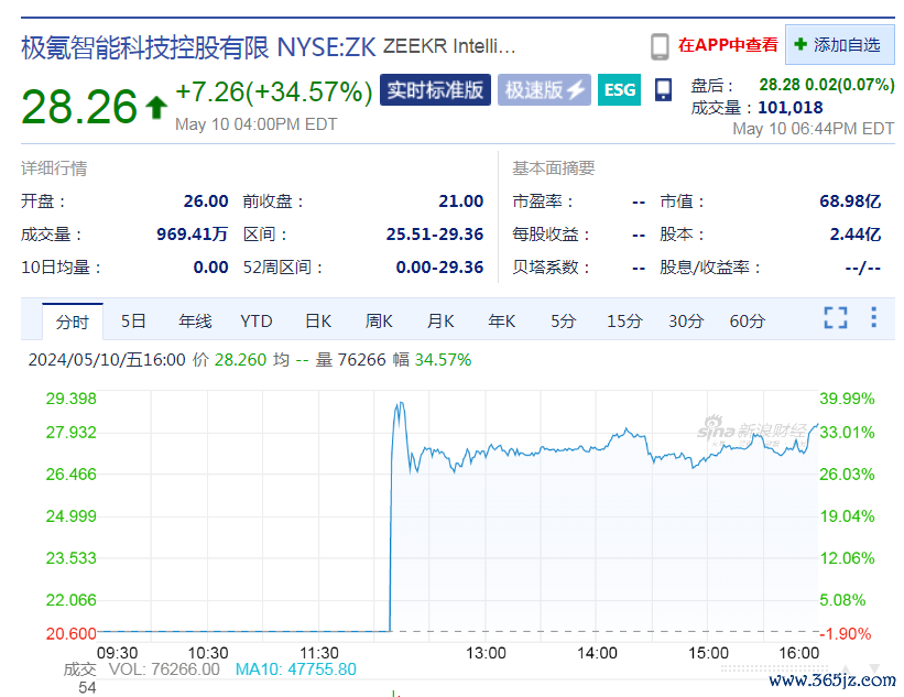 极氪登陆纽交所挂牌上市 上市首日大涨34.57%