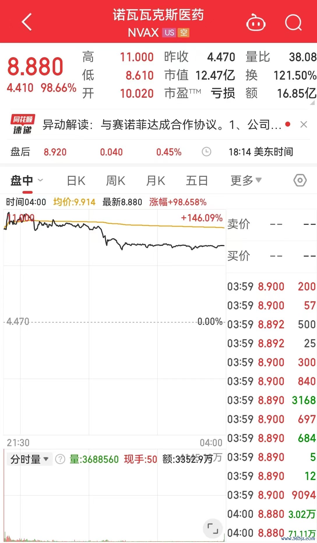 诺瓦瓦克斯医药大涨近99%